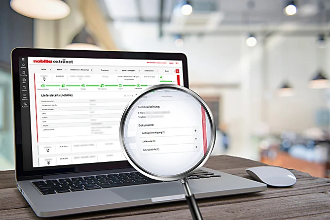 Im nobilia Extranet finden Sie wichtige Informationen, die Sie für Ihre tägliche Arbeit benötigen: Auftragsdaten, Lieferzeiten, wichtige Ansprechpartner, gebündelt an einem Ort. Profitieren Sie von unserem digitalen Rund-um-die-Uhr-Service und erleichtern Sie sich Ihren Arbeitsalltag.