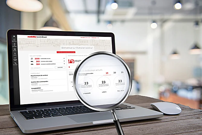 L'Extranet nobilia vous fournit des informations importantes dont vous avez besoin pour votre travail quotidien : Données de commande, délais de livraison, interlocuteurs importants, regroupés en un seul endroit. Profitez de notre service numérique 24h/24 et facilitez votre travail au quotidien.